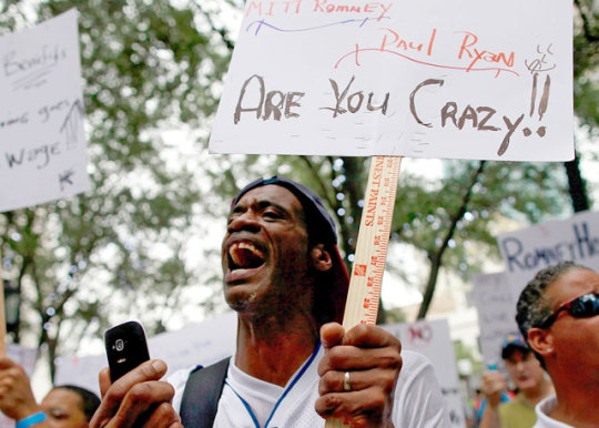 Nos arredores da convenção republicana formalmente aberta nesta segunda-feira, grupelhos de agitadores protestam. São os eleitores do Obama. O contraste entre os que protestam e o discreto, limpo e calmo ato de lançamento da candidatura de Romney há um ano como mostra o vídeo acima, colocam ante o eleitorado americano uma opção: a ordem ou a anarquia.
