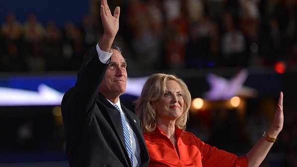 | Mitt Romney e sua esposa Ann na convenção em Tampa, na Florida. |