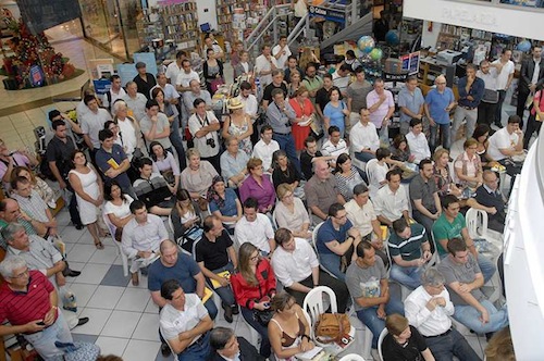 O espaço da Livraria Catarinense do Beiramar Shopping tornou-se pequeno para acolher o generoso público que prestigiou a sessão de autógrafos do livro "O País dos Petralhas II - O inimigo agora é o mesmo", de Reinaldo Azevedo, destacado jornalista do site da revista Veja.