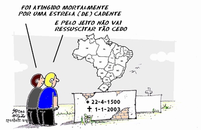 DIREITA: reunião de grupos de interesse político e econômico-financeiro com o objetivo de impedir a representação popular, garantindo seu enriquecimento e a manutenção da injustiça social, exceto em se tratando de Fernando Collor e José Sarney.FATO: denúncia irresponsável, infundada e caricata difundida por meios de comunicação alimentados por verba publicitária estatal.