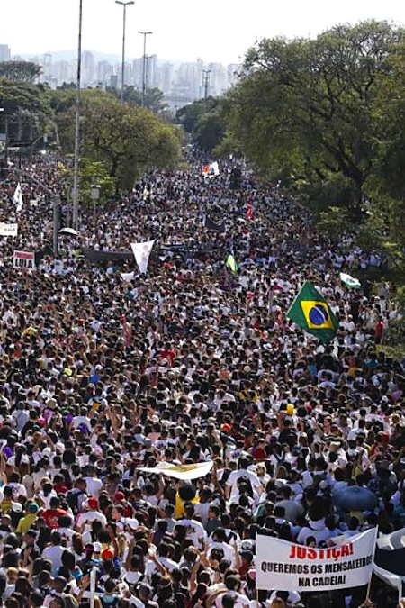 Também constatou-se que essa multidão marchou, cantou, exibiu cartazes também contra atos governamentais, pediu até mesmo a prisão dos mensaleiros do PT, porém não se registrou nenhuma ocorrência policial. Só isso já é um fato inaudito.